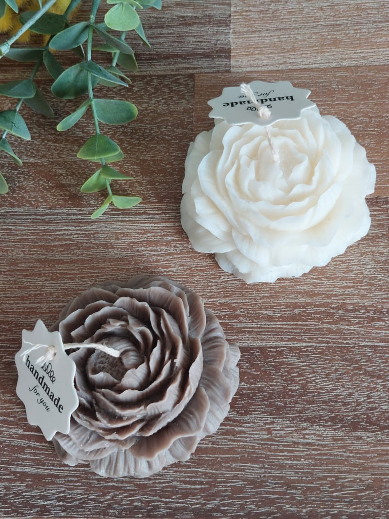 These soy wax Peony flowers are available in white or natural colour.